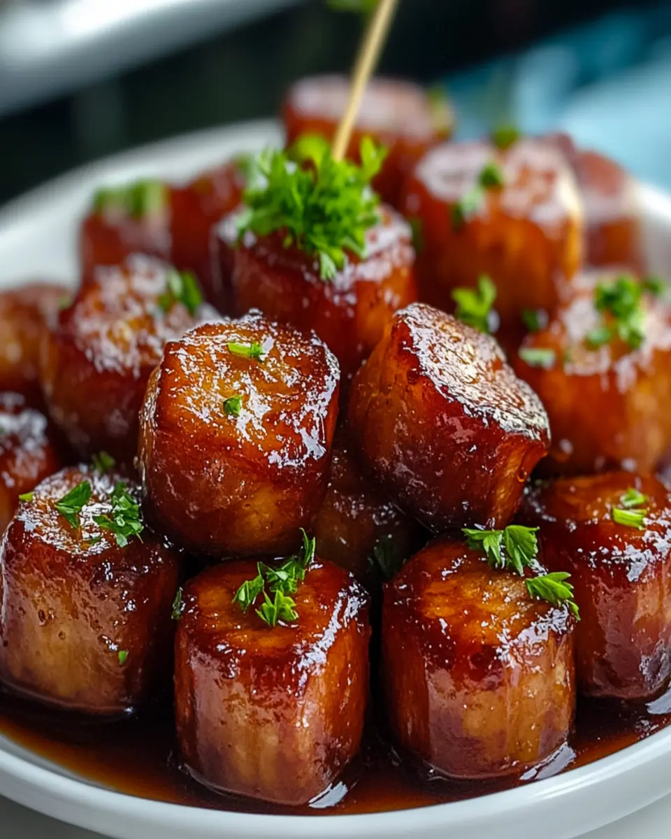 A delicious and easy appetizer that combines sweet and savory flavors with kielbasa and a caramelized sauce.
