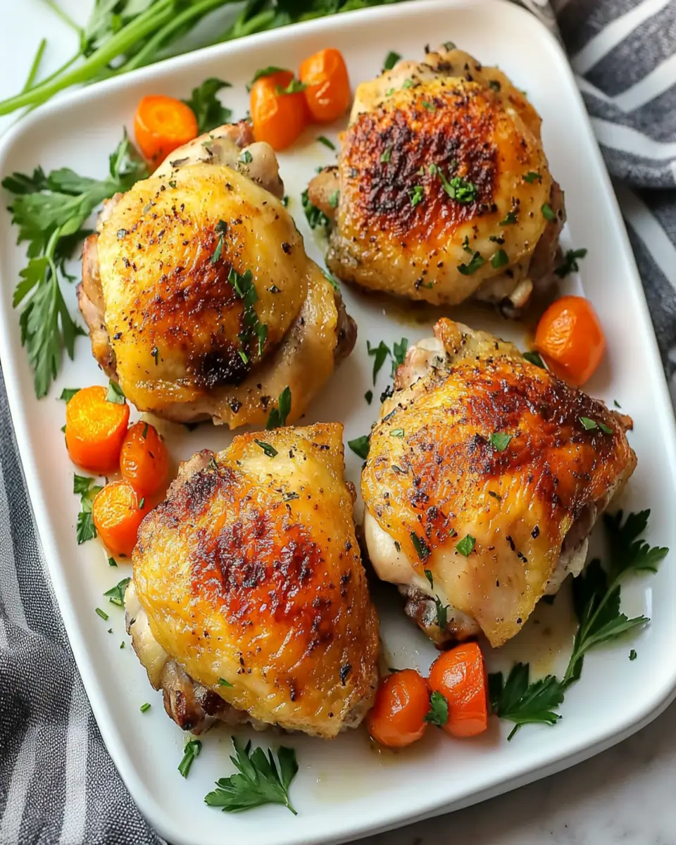 These crispy oven-roasted chicken thighs are packed with flavor and are sure to be a hit with the whole family.