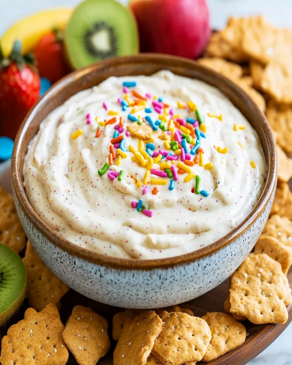 Not only is this dip quick and easy to whip up, but it also caters to a variety of dietary preferences. Whether served with fresh fruit, graham crackers, or pretzels, it’s versatile enough to please any crowd. The combination of Greek yogurt and cream cheese ensures every bite is creamy and luscious, making it a hit with both adults and kids alike. So, why not treat yourself and your guests to this delightful High Protein Dunkaroo Dip? You’re sure to win hearts and taste buds alike!
