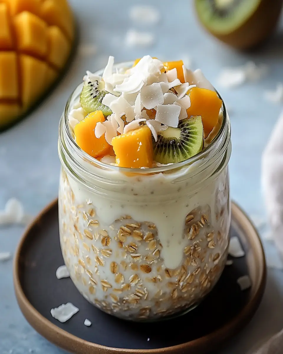 A delicious and easy recipe for creamy coconut overnight oats, perfect for breakfast.