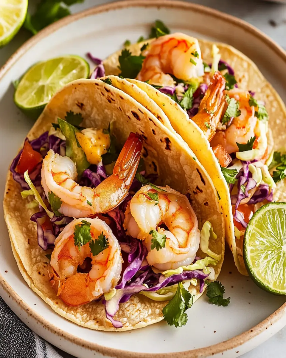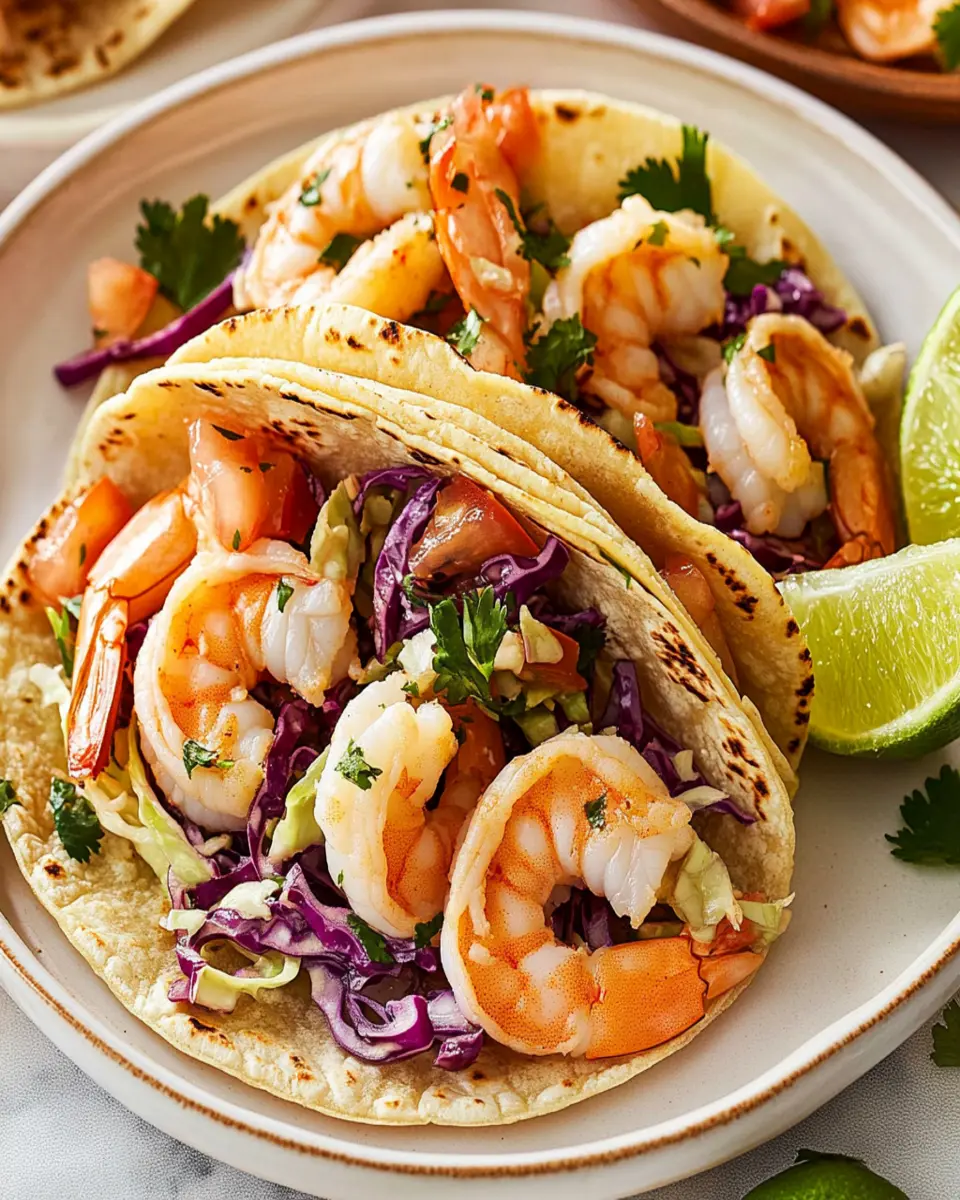 Crunchy and refreshing, shredded cabbage adds a crisp contrast to the tender shrimp, making the tacos feel light and vibrant.