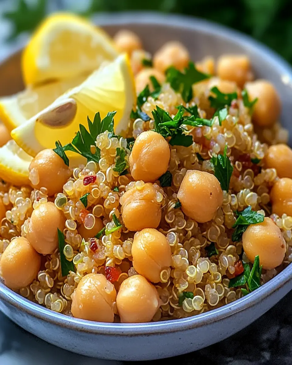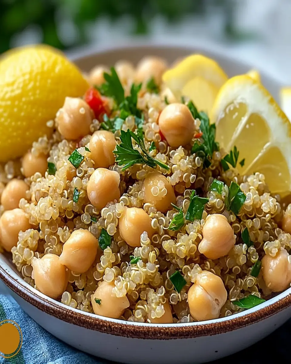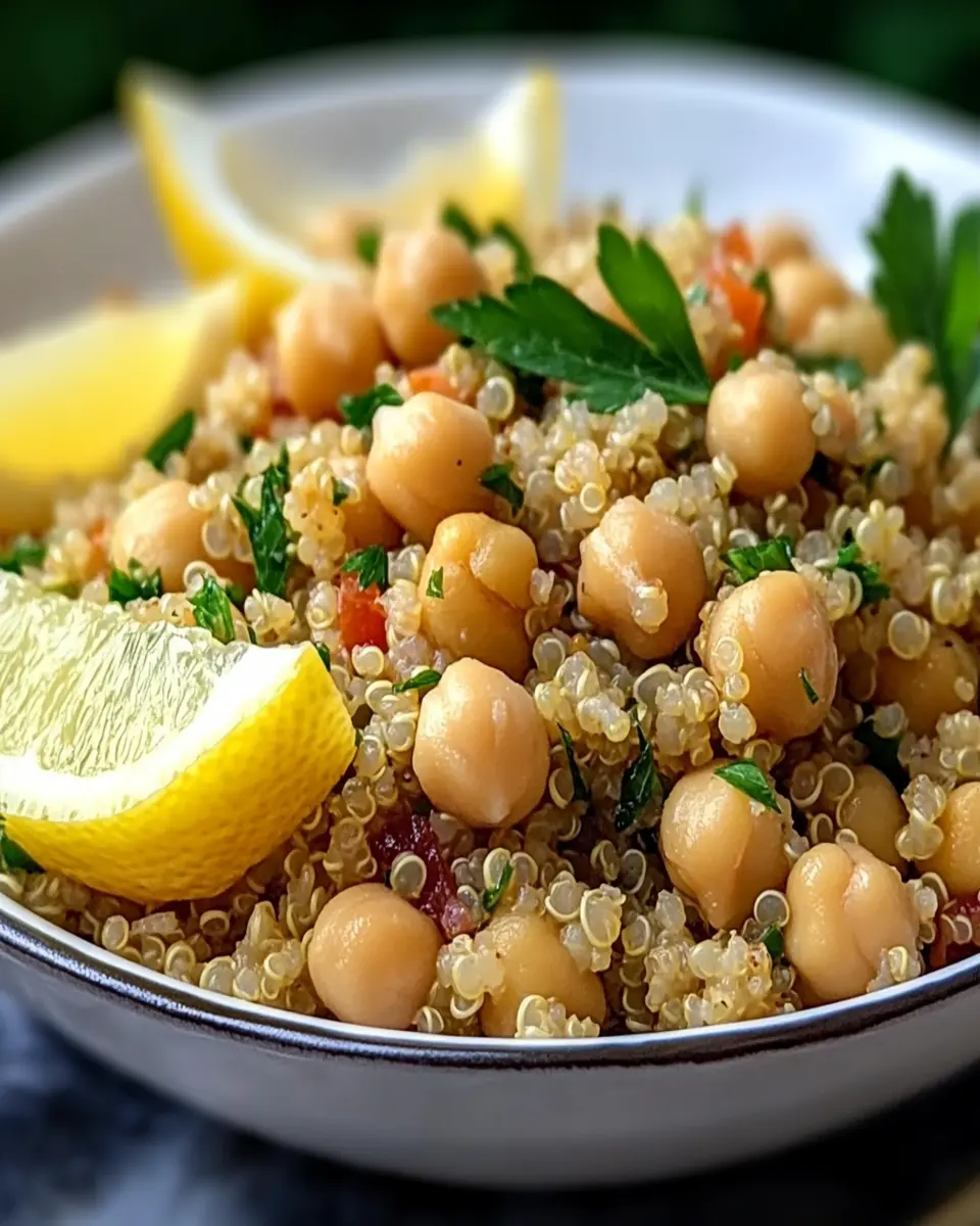 A refreshing and nutritious dish featuring quinoa, chickpeas, and a zesty lemon herb dressing.