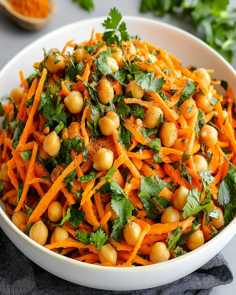 A refreshing and nutritious salad with a blend of carrots and chickpeas, flavored with Moroccan spices.