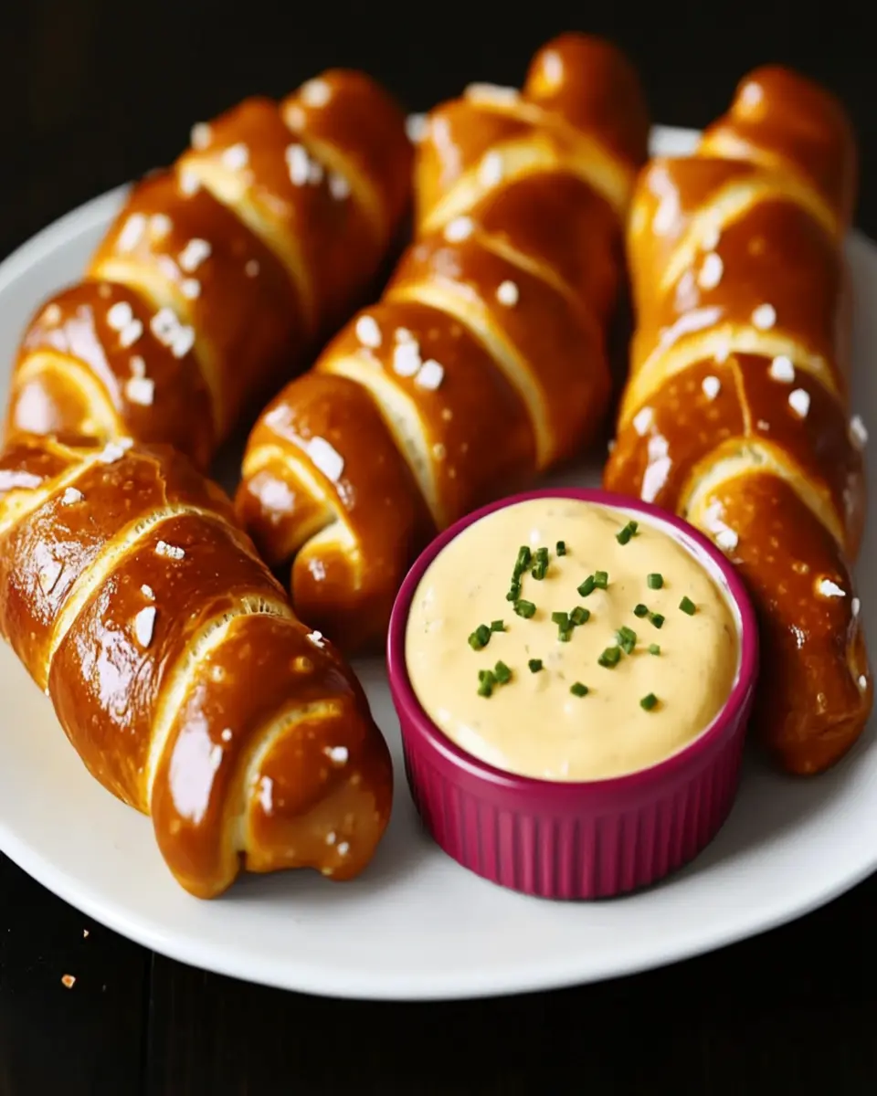 Serve your Pretzel Pigs in a Blanket warm alongside the beer cheese dip for maximum flavor. To add a touch of flair, consider garnishing the dip with chopped chives or sprinkle some additional cheese on top before serving. This not only enhances the presentation but also adds an extra layer of flavor.