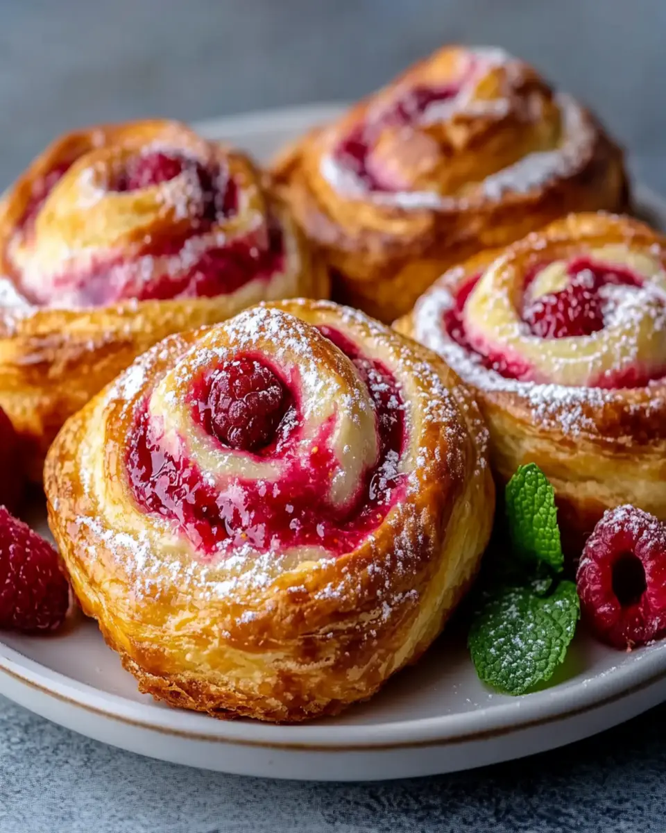 Serve your danishes alongside a selection of fresh fruit. Berries, sliced apples, or citrus fruits provide a refreshing contrast to the rich cream cheese filling and sweet raspberry preserves, making for a balanced plate. This not only adds a pop of color but also enhances the overall flavor profile.